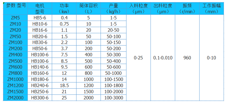 ZM系列振动磨是一种新型的高效制粉设备,有单筒式、双筒式和三筒式三种结构型式,其中2ZM系列振动磨运用范围为广泛。振动磨是利用圆筒的高频振动,筒中的钢球或钢棒介质依靠惯性力冲击物料,介质冲击物料时的加速度可达10g-15g,因此具有结构紧凑、体积小、重量轻、能耗低、产量高、粉磨粒度集中、流程简化、操作简单、维修方便、衬板介质更换容易等优点,可广泛用于冶金、建材、矿山、耐火、化工、玻璃、陶瓷、石墨等行业制粉。